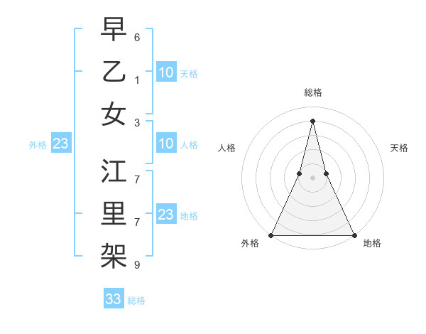 早乙女 江里架さんを姓名の画数から五運を鑑定