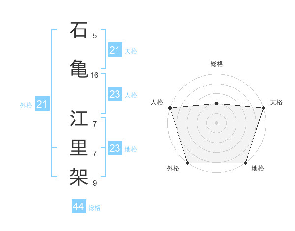 石亀 江里架さんを姓名の画数から五運を鑑定