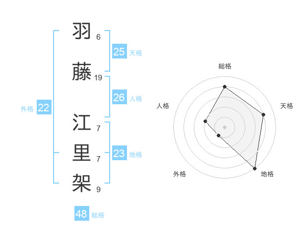 羽藤 江里架さんを姓名の画数から五運を鑑定