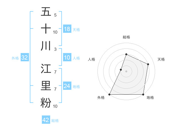 五十川 江里粉さんを姓名の画数から五運を鑑定