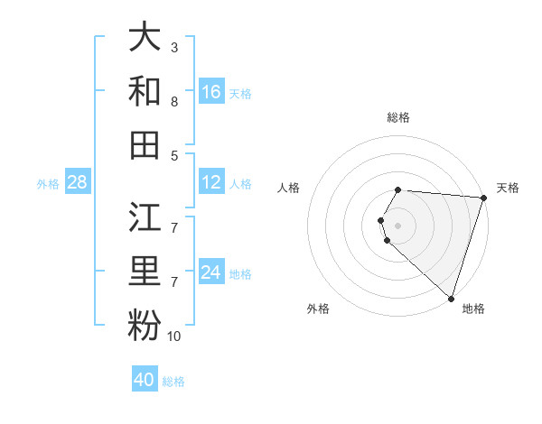 大和田 江里粉さんを姓名の画数から五運を鑑定