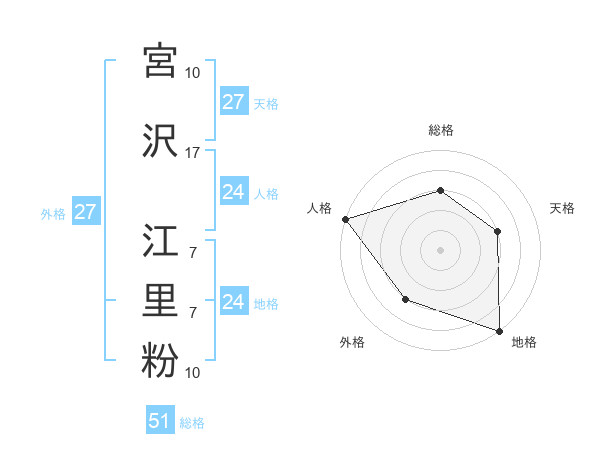 宮沢 江里粉さんを姓名の画数から五運を鑑定