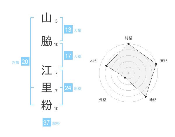 山脇 江里粉さんを姓名の画数から五運を鑑定
