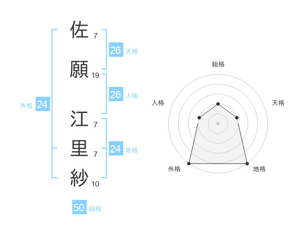 佐願 江里紗さんを姓名の画数から五運を鑑定