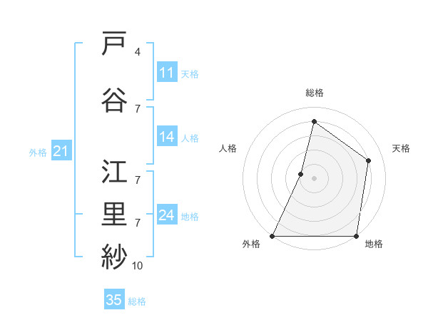 戸谷 江里紗さんの総格は35画の4点!