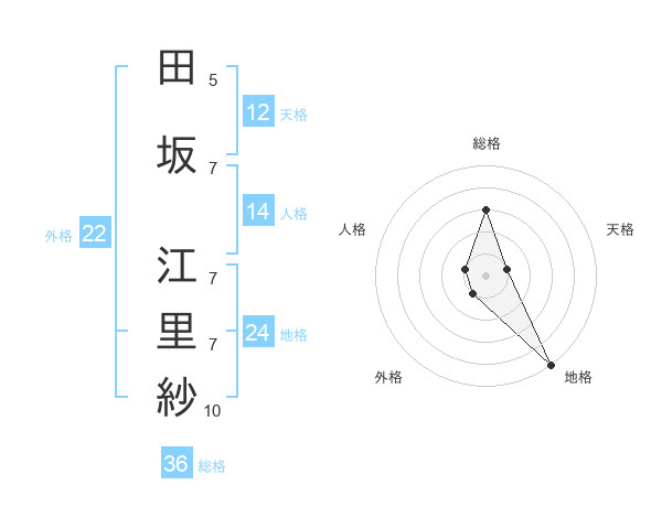 田坂 江里紗さんを姓名の画数から五運を鑑定