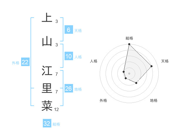 上山 江里菜さんを姓名の画数から五運を鑑定