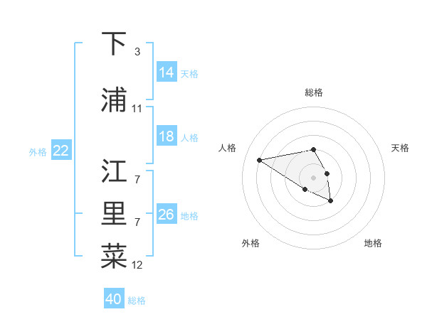 下浦 江里菜さんを姓名の画数から五運を鑑定
