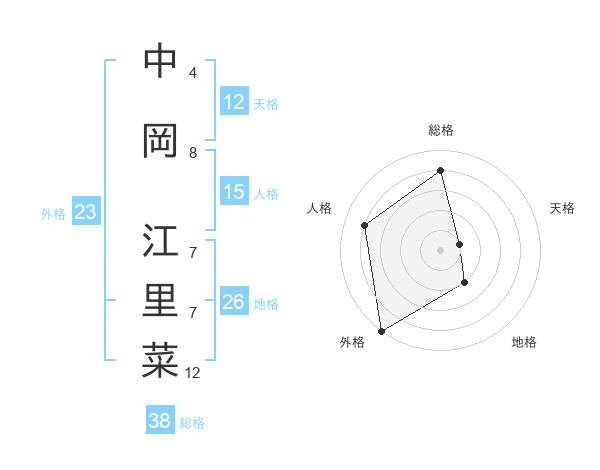 中岡 江里菜さんの総格は38画の4点!