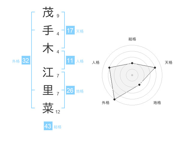 茂手木 江里菜さんを姓名の画数から五運を鑑定