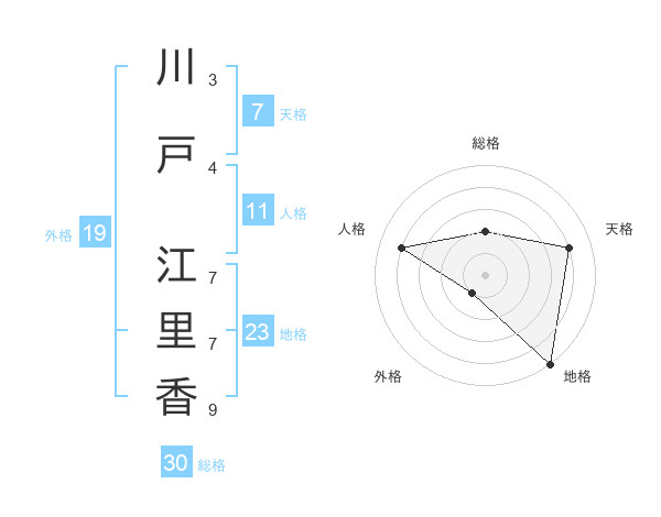 川戸 江里香さんを姓名の画数から五運を鑑定