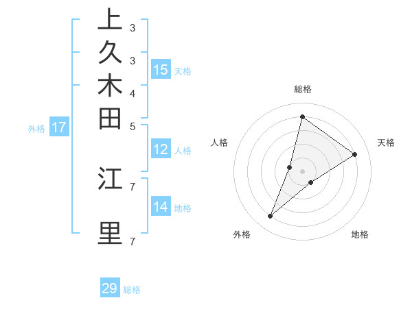 上久木田 江里さんを姓名の画数から五運を鑑定