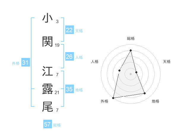 小関 江露尾さんの総格は57画の4点