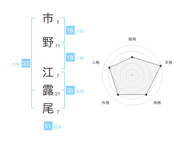 市野 江露尾さんを姓名の画数から五運を鑑定