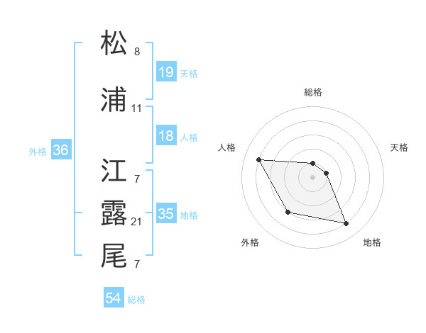 松浦 江露尾さんを姓名の画数から五運を鑑定