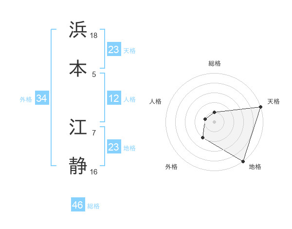 浜本 江静さんの地格は23画の5点!