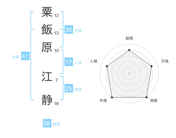 粟飯原 江静さんを姓名の画数から五運を鑑定