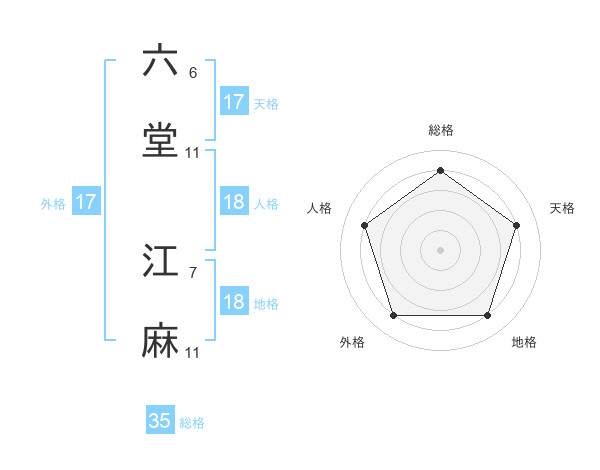 六堂 江麻さんの天格は17画の4点!
