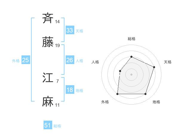 斉藤 江麻さんを姓名の画数から五運を鑑定