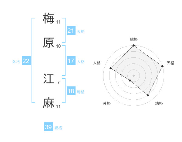 梅原 江麻さんの総格は39画の5点!