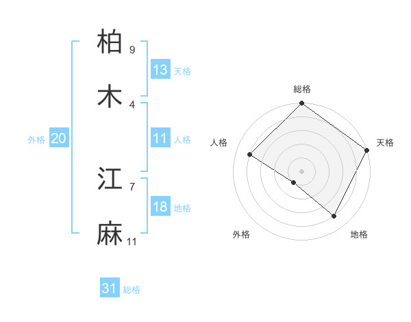 柏木 江麻さんを姓名の画数から五運を鑑定