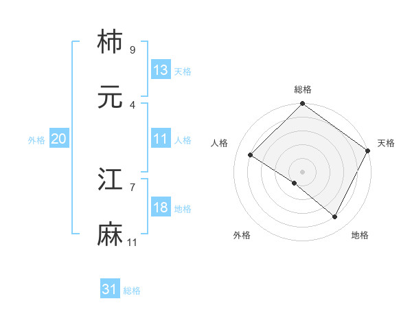 柿元 江麻さんの総格は31画の5点!