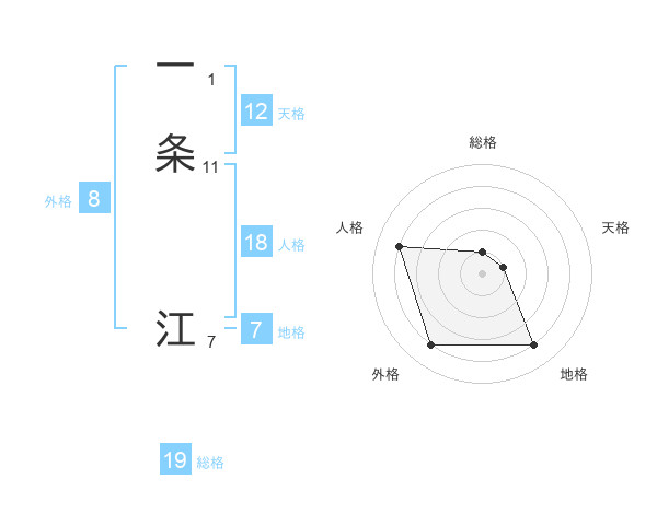 一条 江さんの総格は19画の1点!
