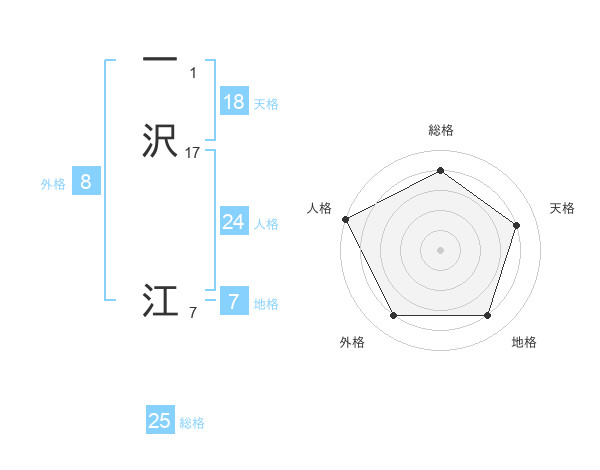 一沢 江さんの総格は25画の4点!