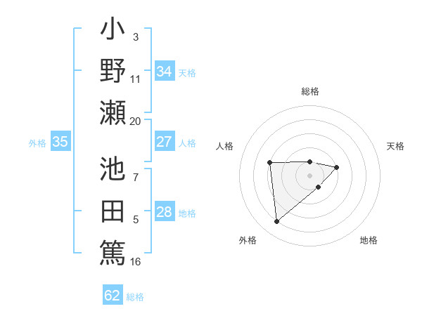 小野瀬 池田篤さんを姓名の画数から五運を鑑定