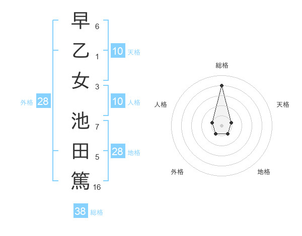 早乙女 池田篤さんの総格は38画の4点!