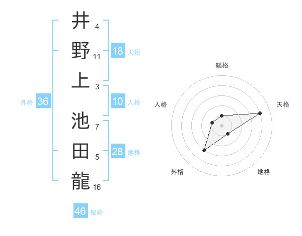 井野上 池田龍さんを姓名の画数から五運を鑑定