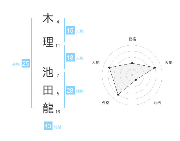 木理 池田龍さんを姓名の画数から五運を鑑定