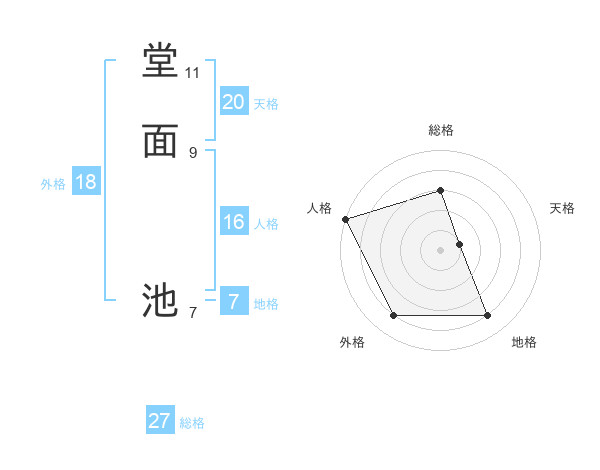 堂面 池さんの総格は27画の3点!