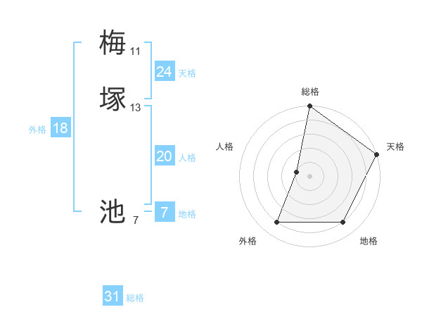 梅塚 池さんの総格は31画の5点!