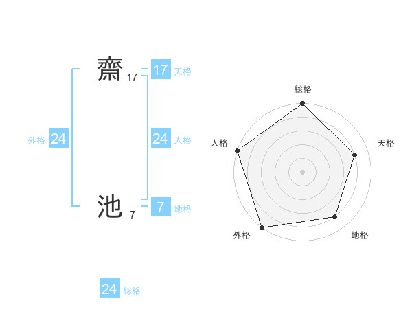 齋 池さんの総格は24画の5点!