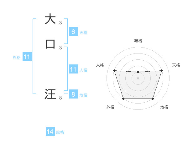 大口 汪さんの天格は6画の4点!