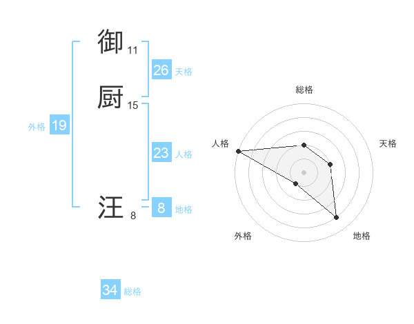 御厨 汪さんの総格は34画の2点!