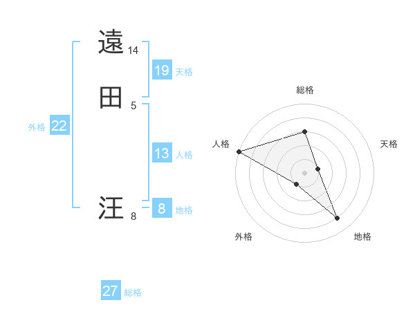 遠田 汪さんの外格は22画の1点!
