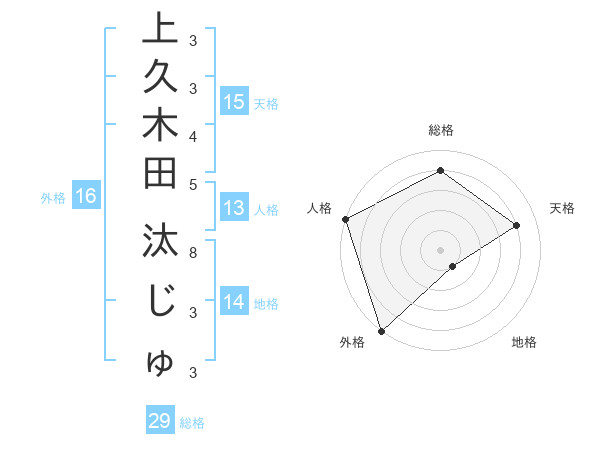 上久木田 汰じゅさんの総格は29画の4点!