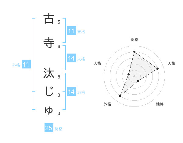 古寺 汰じゅさんの外格は11画の4点!