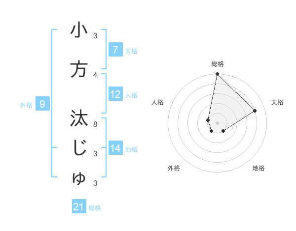 小方 汰じゅさんの総格は21画の5点!