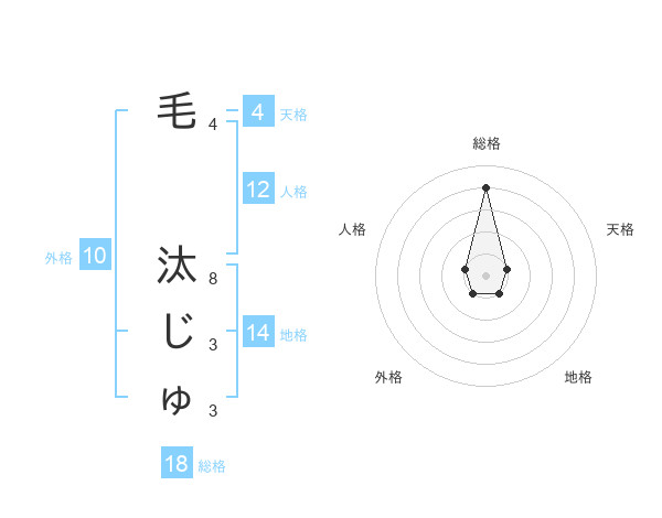 毛 汰じゅさんの総格は18画の4点!