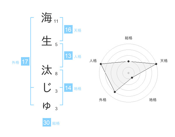 海生 汰じゅさんの外格は17画の4点!