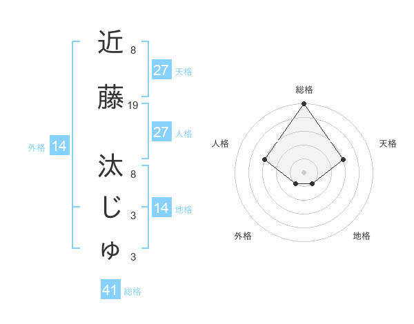 近藤 汰じゅさんを姓名の画数から五運を鑑定