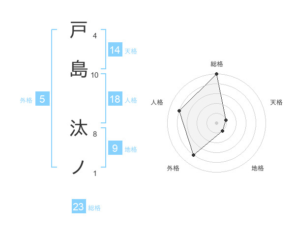 戸島 汰ノさんを姓名の画数から五運を鑑定