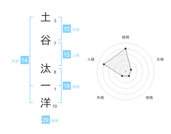 土谷 汰一洋さんを姓名の画数から五運を鑑定
