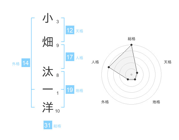 小畑 汰一洋さんを姓名の画数から五運を鑑定