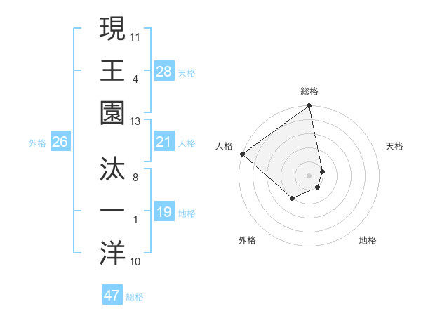 現王園 汰一洋さんの総格は47画の5点!