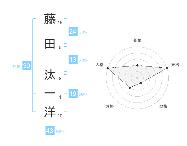 藤田 汰一洋さんを姓名の画数から五運を鑑定