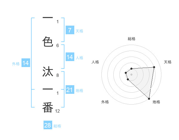 一色 汰一番さんの地格は21画の5点!